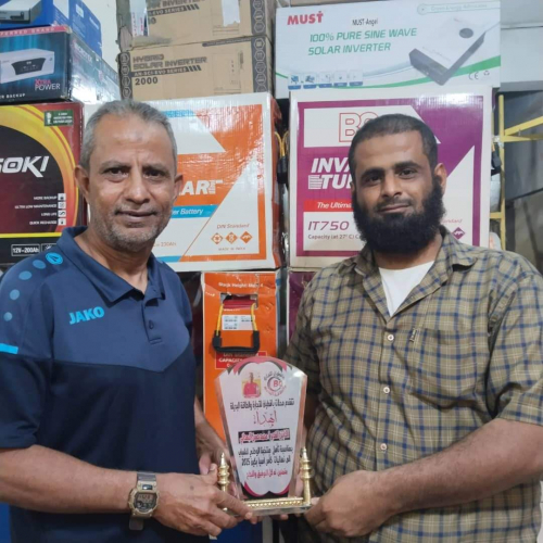 كرمت محلات باقطيان للتجارة والطاقة البديلة بالشيخ عثمان مدرب المنتخب الوطني للشباب الكابتن القدير محمد حسن بعداني بدرع تذكاري بمناسبة قيادته للمنتخب وتأهله إلى نهائيات كأس آسيا بكين 2025 الذي جاء بحنكة واجتهاد المدرب الرائع الكابتن محمد البعداني وقيادته الحكيمة في وصول المنتخب إلى التأهل الذي شرف الكرة اليمنية.