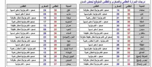 درجات الحرارة المتوقعة في عددٍ من المحافظات اليمنية اليوم الإثنين 30 مايو 2022: