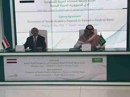 على هامش المحادثات الجارية بين الجانبين اليمني والسعودي للاتفاق على آلية استخدام الدعم المقدم من دولتي المملكة العربية السعودية ودولة الإمارات العربية المتحدة للبنك المركزي اليمني، والمخصص لدعم استقرار العملة الوطنية والأسعار، والبالغ ملياري دولار.. تم اليوم صباح اليوم الإثنين الموافق 16 مايو 2022م، التوقيع على اتفاقية تمديد الوديعة السعودية السابقة وتحويل الدفعة الأخيرة منها والبالغة 174 مليون دولار الى حساب البنك المركزي اليمني.