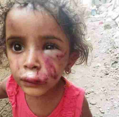 وأظهرت صوراً تداولها نشطاء على مواقع التواصل الاجتماعي الطفلة التي تنحدر من منطقة وادي المدام وسط مدينة تعز وعليها آثار تورم وكدمات على وجهها.