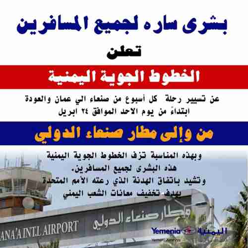 وأشار أن “الخطوط الجوية اليمنية ستبدأ من اليوم، إجراء الحجوزات الخاصة بتلك الرحلة وستكون الأولوية للمرضى”.