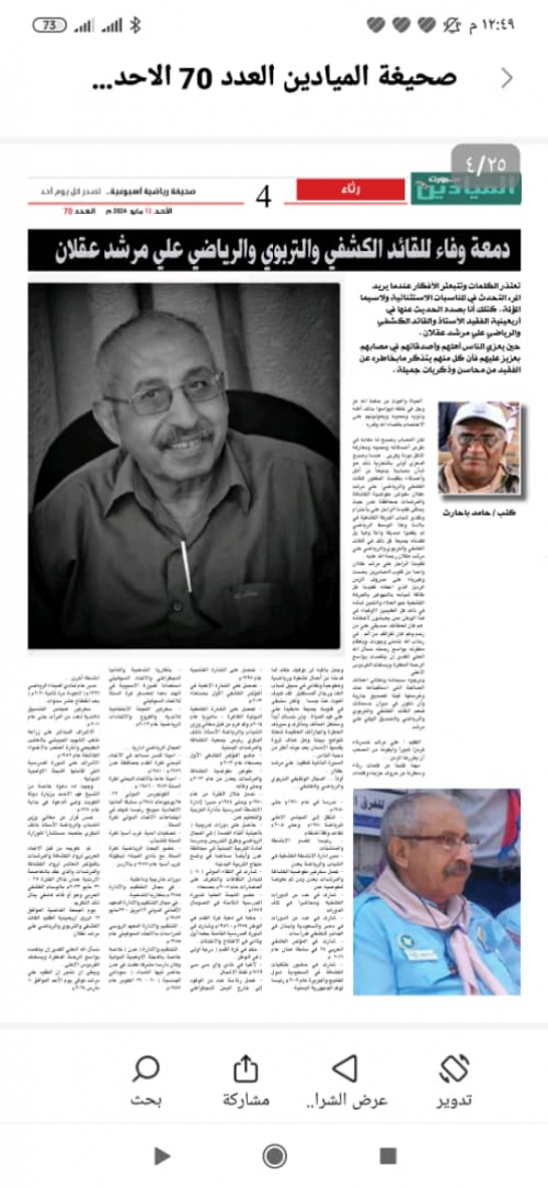 يوم الجمعة الماضية الموافق 19 ابريل اربعينية الفقيد القائد الكشفي والتربوي والرياضي علي مرشد عقلان