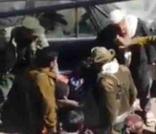 وحاول احد العناصر الحوثية خنق المواطن الذي ظل مستسلما ويتلقى الصفعات والركلات دون اي حراك.