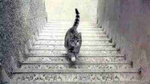 والآن عزيزي القارئ.. كيف ترى القطة وحركتها على الدرج؟ هل القطة تصعد أو تهبط؟