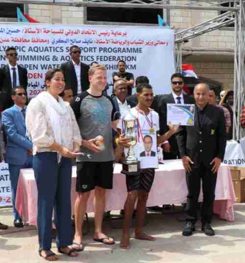 رئيس الاتحاد الدولي للسباحة (المسلم) يتوج (فضل) بكأس عدن (11) للسباحة في المياه المفتوحة