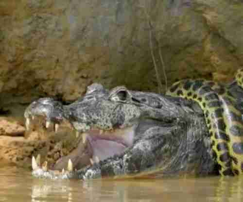 وقع تمساح ضخم في قبضة أفعى الأناكوندا الصفراء التي تعتبر ثاني أكبر الثعابين في العالم بعد الأناكوندا الخضراء، بحسب ما كتبته مجلة “ناشيونال جيوغرافيك”، في حديثها عن هذه القصة المرعبة.