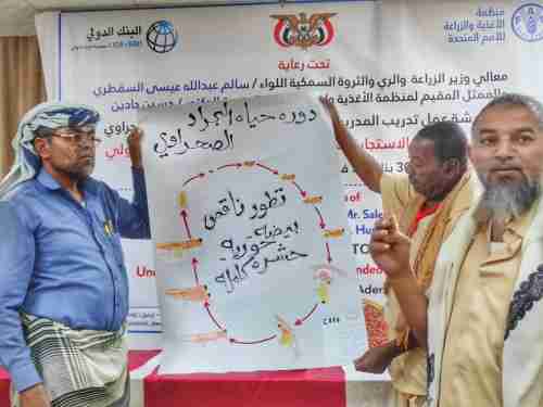 وأقيمت الدورة التدريبية برعاية وزير الزراعة والري والثروة السمكية اللواء سالم السقطري، والممثل المقيم لمنظمة الفاو الدكتور حسين جادين.