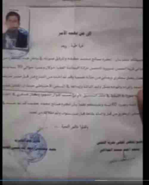 وأشار اخ المحكوم عليه بانه اطلع القاضي الحوثي “عبدالجبار عطا” قاضي المحكمة الجزائية الثانية بأمانة العاصمة على شهادات أبناء وقال القرية وافادة مير امن مديرية الحصن بالإضافة الى وثائقه الدراسية التي تثبت بان الشخص المقبوض عليه هو ” اكرم صالح محمد عطيفه” وليس ما يدعيه منطوق الحكم بانه “عبدالوهاب”.