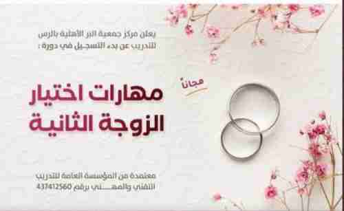 أثار إعلان عن دورة تدريبية للتعريف بالطريقة المثلى للزواج من زوجة ثانية، جدلاً واسعاً في السعودية، مما أدى إلى إلغاء الدورة المزمع إقامتها بمقر جمعية البر الأهلية بالرس تحت عنوان “مهارات اختيار الزوجة الثانية”.