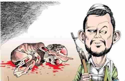 وكانت صورة كاريكاتورية قد انتشرت لزعيم المليشيا على وسائل التواصل، وهو يحمل سلاحه الآلي، وخلفه جنين غارقا في دمائه، في إشارة إلى طفل الصحفي ” محمود العتمي” الذي لقي مصرعه في حادث تفجير سيارته.