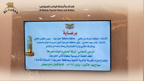 اجريت صباح اليوم الاثنين الفاتح من يناير للعام 2024 بقاعة فندق الرحاب بمدينة سيئون قرعة بطولة كاس حضرموت الثامنة لكرة القدم التي تقام برعاية الاستاذ مبخوت مبارك بن ماضي محافظ محافظة حضرموت والاستاذ عامر سعيد العامري وكيل محافظة خصرموت لشئون مديريات الوادي والصحراء بإشراف مكتبي الشباب والرياضة بوادي وساحل حضرموت وبرعاية شركة العمقي وإخوانه للصرافة..