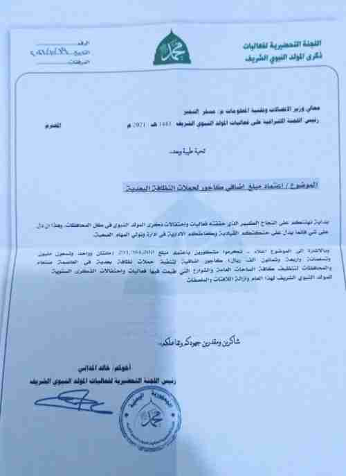 وجاء في الوثيقة، أن الـ300 مليون تكلفة حملات نظافة وإزالة ملصقات لما بعد احتفالات المولد في مناطق سيطرة مليشيات الحوثي.