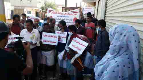 نفذ زارعي الكلى في عدن وقفة احتجاجية امام مقر وزارة الصحة العامة والسكان في خورمكسر.
