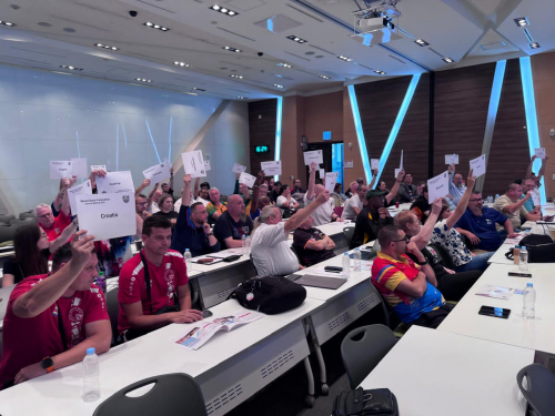 وقد شهد التصويت مشاركة وفود من 80 دولة من أعضاء الاتحاد الدولي للدارتس، حيث فازت مصر بالتصويت بأغلبية ساحقة، بعد منافسة مع كلٍ من الولايات المتحدة الأمريكية و المجر.
