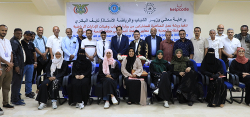 شهد معالي وزير الشباب والرياضة نايف صالح البكري، اليوم الخميس، ختام “ورشة عمل للمناصرة ودمج معايير مكافحة التمييز في خطط التنمية المجتمعية”، التي نفذتها منظمة (هلب كود) الإيطالية، بالتنسيق مع وزارة الشباب والرياضة، وأُقيمت على مدى (4) أيام، بمشاركة 25 متدربًا، من الوزارة وهيئات الإدارة الرياضية والسلطة المحلية في محافظات “عدن، ولحج والضالع”.