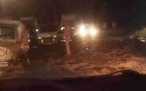 تسببت الأمطار الغزيرة والسيول الجارفة التي شهدتها محافظة تعز يوم الجمعة في قطع الطريق الرئيسي الواصل بين محافظتي تعز وعدن عبر منفذ هيجة العبد.