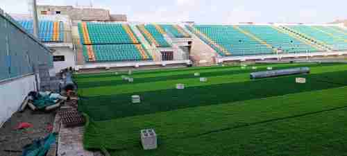 وأضاف، “تستمر الشركة المنفذة لمشروع تأهيل وتعشيب ملعب الشهداء والنادي الأهلي بمحافظة تعز، أعمالها حيث استكملت الشركة أعمال إزالة العشب الصناعي السابق لأرضية الملعب وتأهيل قنوات تصريف المياه والصرف الصحي للملعب، مشيرًا إلى أنه يتم العمل على تهيئة وصول العشب الصناعي الجديد ويليه تركيب كراسي المنصة الرئيسية”.
