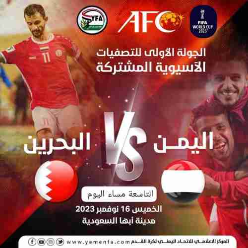 بعد ساعات قليلة عند الساعة التاسعة مساء اليوم، سيحتضن ملعب مدينة الأمير سلطان بن عبدالعزيز الرياضية بمدينة أبها السعودية، لقاء مهم بين منتخبنا الوطني الاول لكرة القدم ونظيره المنتخب البحريني الشقيق في ذهاب الدور الثاني لمنافسات التصفيات الآسيوية المؤهلة لكأس العالم 2026 وآسيا 2027..