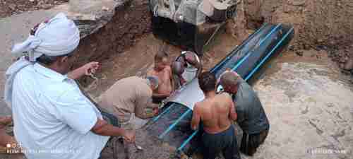 تجري حالياً أعمال  اصلاح لكسرين في خط المياه الرئيسي القادم من حقل بئر أحمد والمغذي لأربع مديريات في عدن.