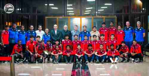 وكان في استقبال البعثة من الجانب العراقي يوسف فعل مدير المكتب الاعلامي بالاتحاد العراقي لكرة القدم و