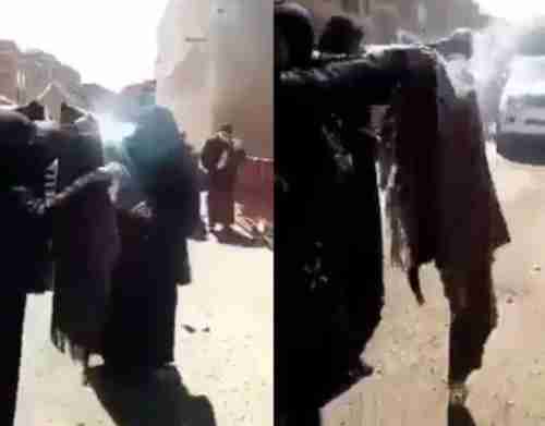 وثق مقطع فيديو متداول، لحظة إحراق معلمات يمنيات، لخمارهن، أمام مجلس النواب غير الشرعي، بالعاصمة اليمنية المختطفة صنعاء، احتجاجًا على قطع المليشيات الحوثية لرواتبهن منذ سنوات.
