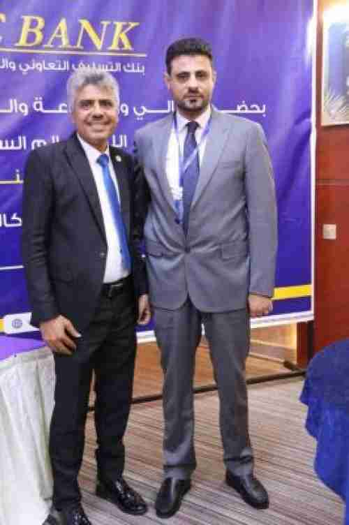 بجانب الأستاذ حاشد محمد الهمداني، القائم بأعمال رئيس مجلس الإدارة ، الرئيس التنفيذي (لكاك بنك).
