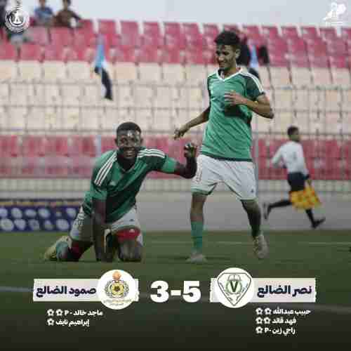 شهدت المباراة تسجيل ثمانية أهداف، خمسة منها لنصر الضالع، و ثلاثة للصمود، الذي قدم مباراة رائعة أظهر من خلالها لاعبيه مهاراتهم الفنية داخل أرضية الملعب،