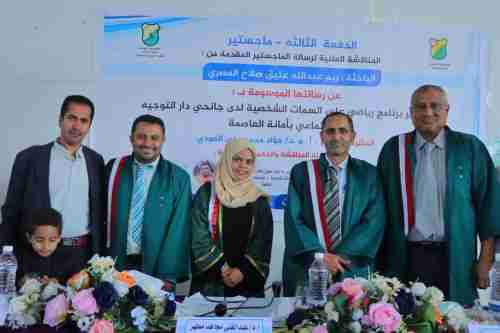 حصلت الباحثة ريم عبدالله عتيق المصري على درجة الماجستير بامتياز مع مرتبة الشرف وذلك عن رسالتها الموسومة بـ” تأثير برنامج رياضي على السمات الشخصية لدى جانحي دار التوجيه الاجتماعي بأمانة العاصمة”.