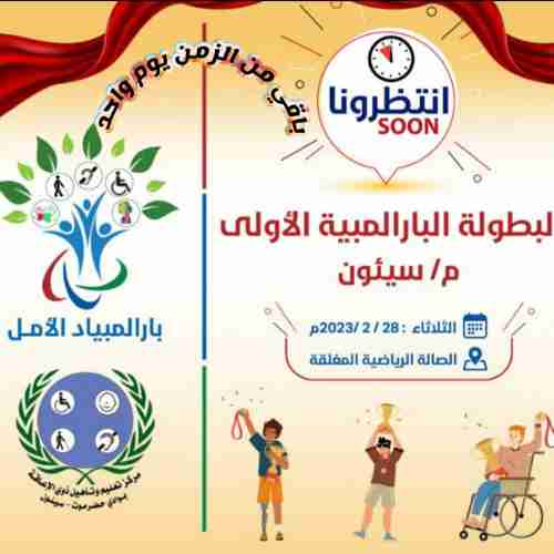 ينظم مركز تعليم ذوي الإعاقة بوادي وصحراء حضرموت صباح يوم غداً الثلاثاء بصالة الشهيد علي عبيد بامعبد بمدينة سيئون بطولة البارالمبية الأولى بسيئون ” أولمبياد الأمل لذوي الاحتياجات الخاصة بوادي وصحراء حضرموت ” ..