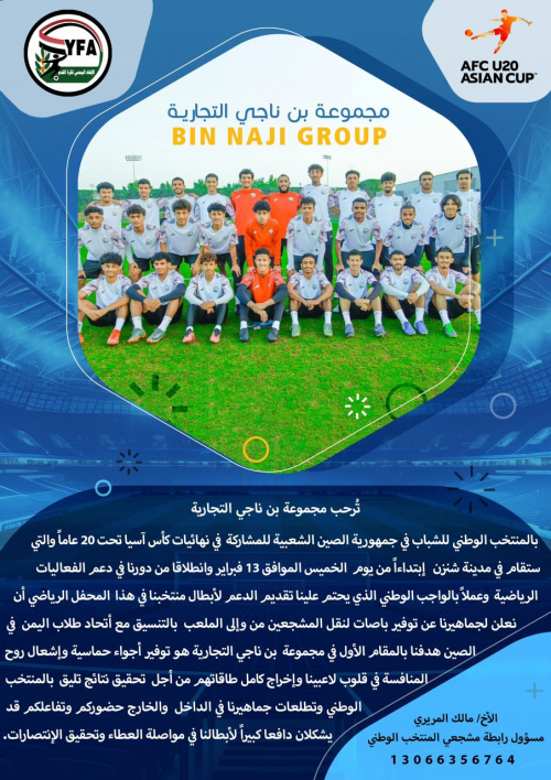 من أجل الترتيب يرجى التواصل مع الأخ مالك المريري مسؤول رابطة مشجعي المنتخب الوطني