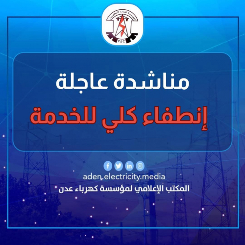 وإذ تعبر المؤسسة العامة لكهرباء عدن عن بالغ أسفها إزاء هذا الانطفاء الكلي الخارج عن إرادتها، ووسط صمت مخيب للآمال من الجهات المناط بها توفير الوقود وضمان استمرارية الخدمات، فإنها تجدد مناشدتها لمجلس القيادة الرئاسي ورئاسة الحكومة بضرورة التدخل العاجل لتوفير الوقود اللازم لإنقاذ العاصمة عدن من هذه الأزمة المتفاقمة.