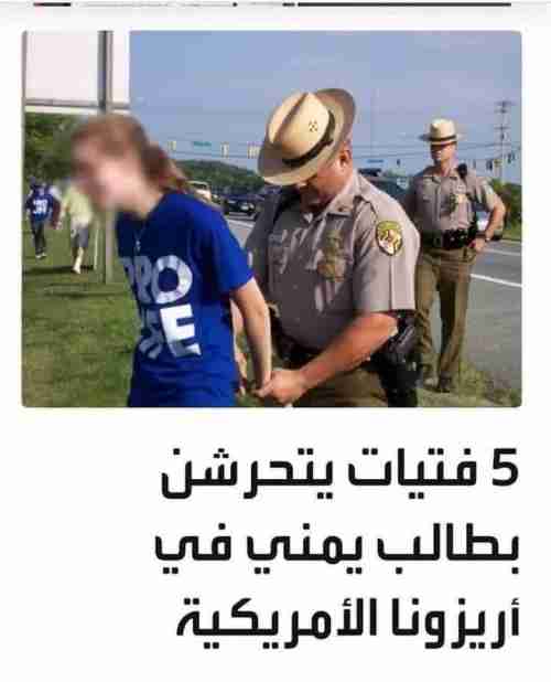 نشر ناشطون يمنيين اليوم خبرا حول تعرض طالب يمني للتحرش من قبل خمس فتيات في ولاية اريزونا الأمريكية بالتزامن مع حادثة اختطاف شاب يمني من أسرة ثرية في العراق من قبل فتاة عراقية مساء الأحد الماضي.