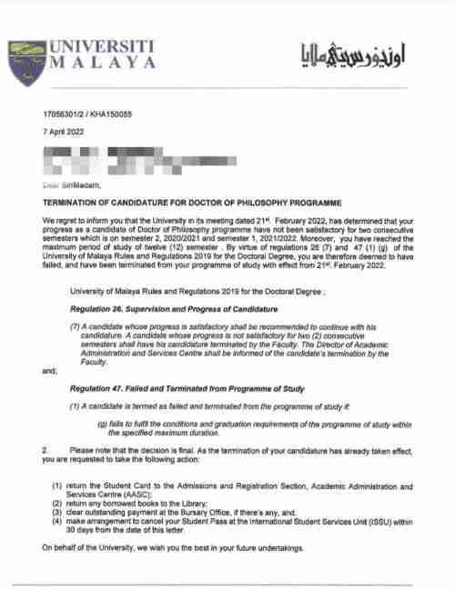 طالب الدكتوراه قدم بلاغا للشرطة الماليزية قال فيه أن نظامه وبياناته البحثية والدكتوراه قد أسيء استخدامهما من قبل اثنين من مشرفي البرنامج الذين يُعتقد أنهما يستخدمونها لمصالحهم التجاريةالشخصية.