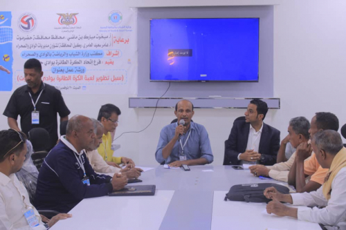 شهدت مدينة سيئون صباح اليوم السبت ورشة عمل تحت عنوان ( سبل تطوير الكرة الطائرة بحضرموت الوادي والصحراء ) والتي نفذها الاتحاد اليمني للكرة الطائرة فرع حضرموت الوادي والصحراء وبأشراف مكتب وزارة الشباب والرياضة حضرموت الوادي والصحراء وبرعاية محافظ محافظة حضرموت الأستاذ / مبخوت بن ماضي ووكيل المحافظة لشؤون مديريات الوادي والصحراء الأستاذ / عامر العامري وذلك بقاعة مكتب الشباب والرياضة بسيئون ..
