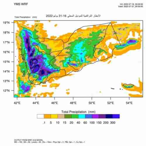 وذكر المركز في بلاغ التنبؤات العددية للنموذج المحلي YMS/WRF، أطلع عليه ” المشهد اليمني “، بأن توقعات التنبؤات العددية للنموذج المحلي YMS/WRF تشير إلى إستمرار حالة عدم الاستقرار خلال الفترة من 16-31 يوليو.