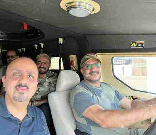 بالصورة.. طارق صالح يتجول بهذه المدينة على متن مدرعة برفقة وزير بالشرعية