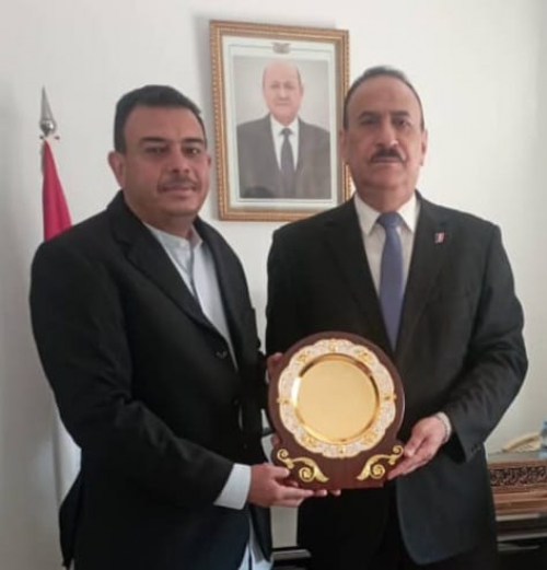 استقبل صباح اليوم سعادة سفير بلادنا في تونس العميد عبدالناصر باحبيب في مكتبة بمبنى السفارة الكابتن احمد حسين الحسني الأمين العام لاتحاد الكره بعدن مدير المنتخب الوطني للناشئين سابقا