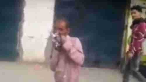 ظهر الشاب، في مقطع فيديو متداول بشكل واسع، في أحد شوارع مدينة يريم بمحافظة إب، وهو يلتهم حمامة نيئة بريشها.