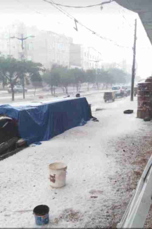 يأتي ذلك بالتزامن مع هطول أمطار غزيرة مصحوبة بالبرد على معظم أنحاء صنعاء وضواحيها، ومناطق في محافظتي عمران وإب.