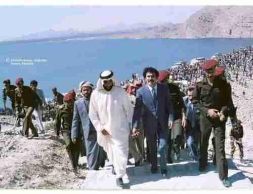 وتظهر الصورة التي تداولها ناشطون الرئيسين علي عبدالله صالح وزايد بن سلطان أثناء افتتاحهما سد مأرب الحديث، الذي تبنى الشيخ زايد بن سلطان دعمه وتمويله.