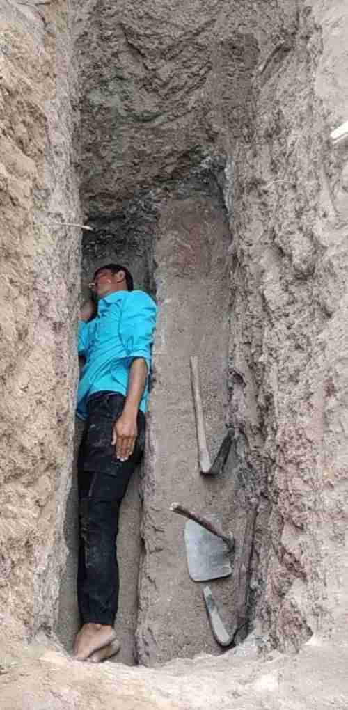 قام شاب من ابناء منطقة عدينة بمديرية الازارق بالضالع بحفر قبر خاص به بيديه.